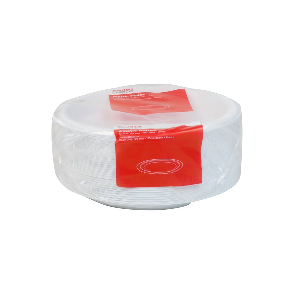 Gordon Choice 10.25 Inch Plastic Plates, White, Polystyrene, 125 Ct Package, 4/Case