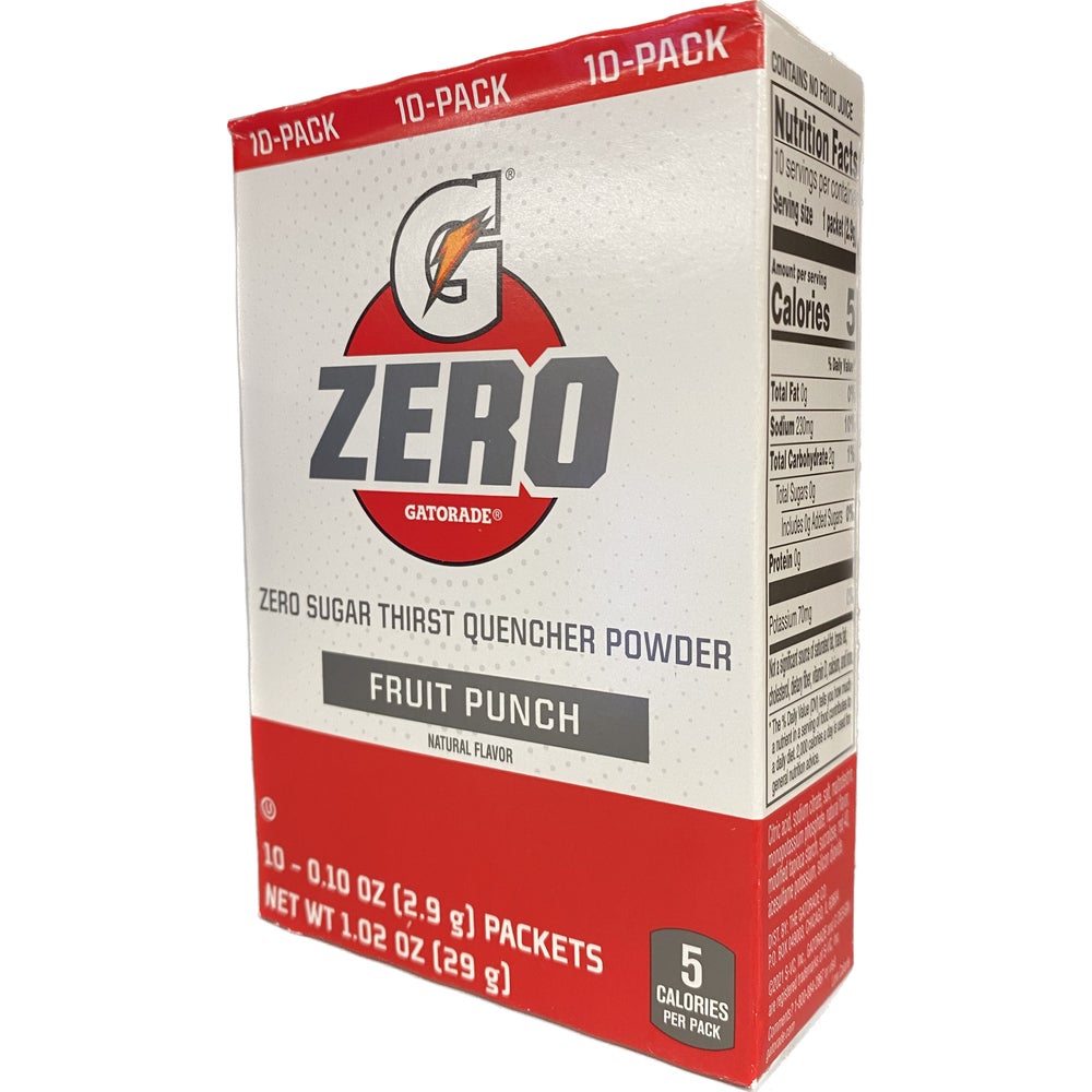 Gatorade Powdered Zero Sugar Fruit Punch Drink Mix, Shelf-Stable, 0.84 Ounce, 10 Ct Package, 12/Case