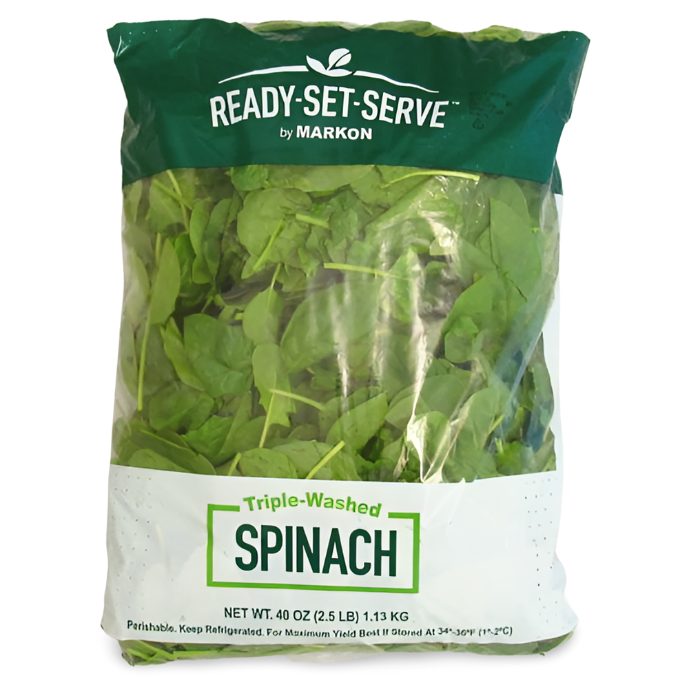 Ready-Set-Serve Cleaned Flat Leaf Spinach, Fresh Cut, 2.5 Lb Bag, 4/Case