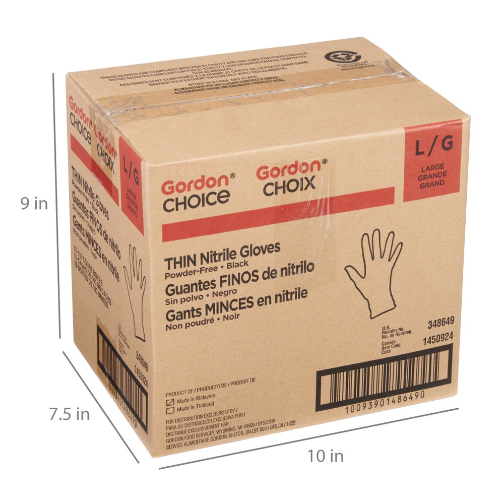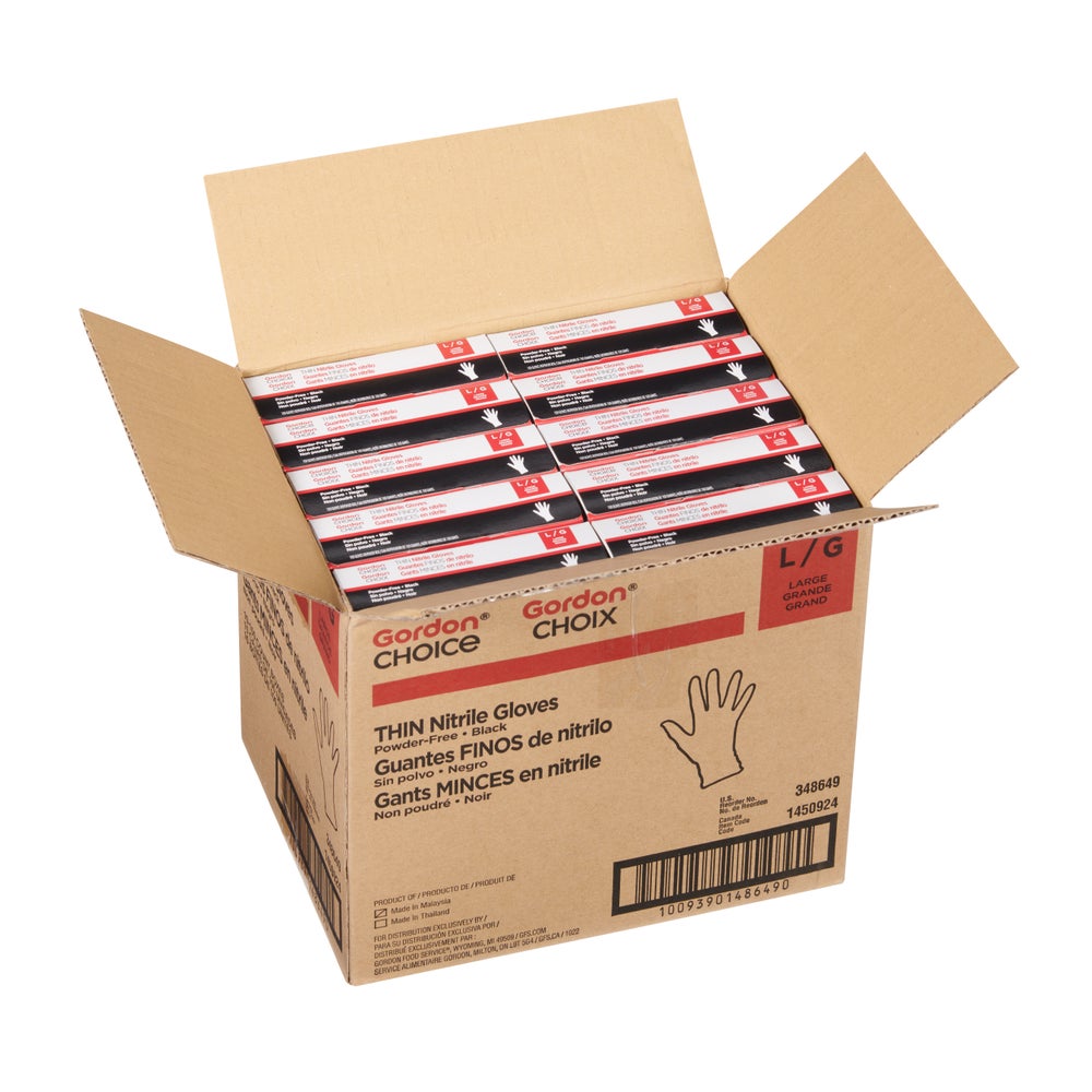Gordon Choice Large Powder-Free Nitrile Gloves, Black, Thin, 100 Ea, 10/Case