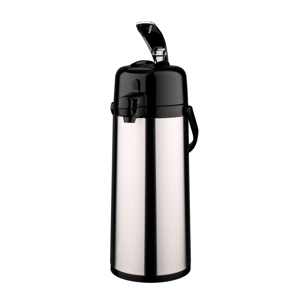 A smooth body design and attractive stainless steel appearance highlight this airpot, featuring a glass liner for optimal heat retention, and a convenient lever lid.