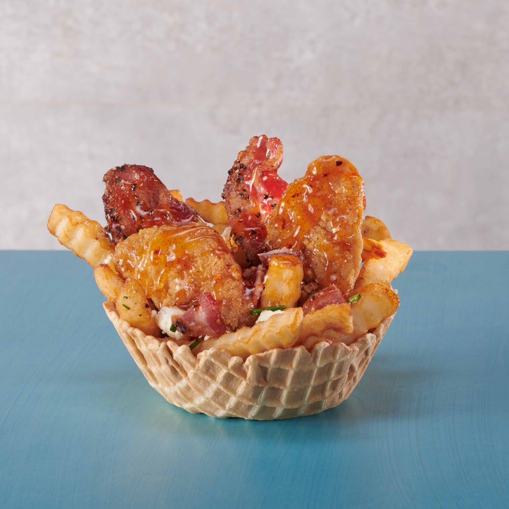 • These chicken tenderloins are designed to fry from frozen for quick preparation. Serve in a basket with fries and sauce.