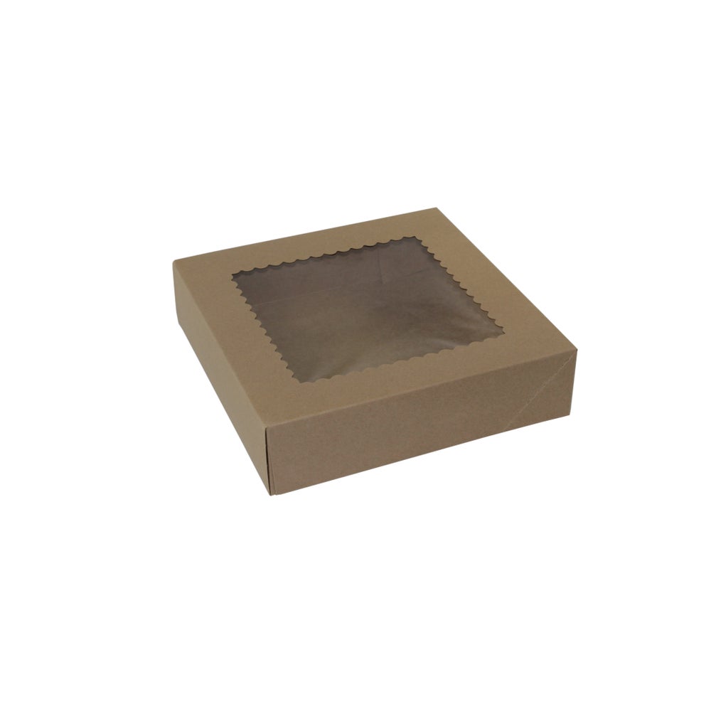 BOXit Corporation 10 x 10 x 2.5 Inch Clay-Coated Paper Window Bakery Boxes, Kraft on Kraft, 1 Ea, 150/Case