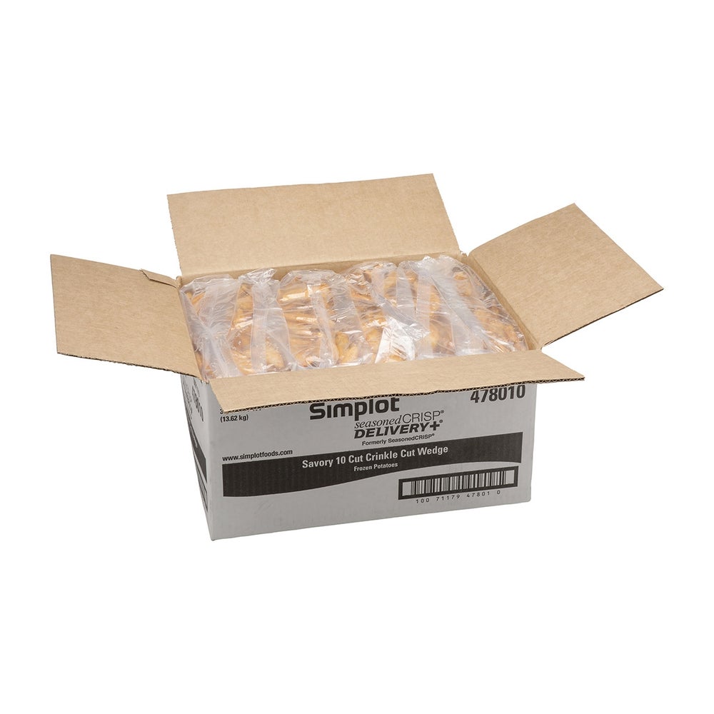 Simplot 3/8 x 3/8 Inch Wedge Cut French Fries, Battered, Bakeable, Frozen, 5 Lb Each, 6/Case