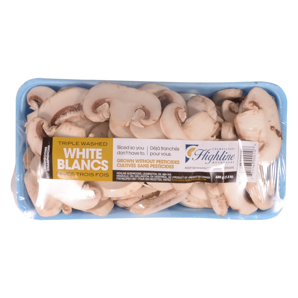 Packer Label 1/4 Inch Sliced Mushrooms, Fresh Cut, 24 Oz Package, 6/Case