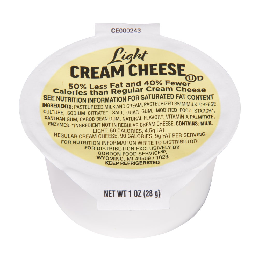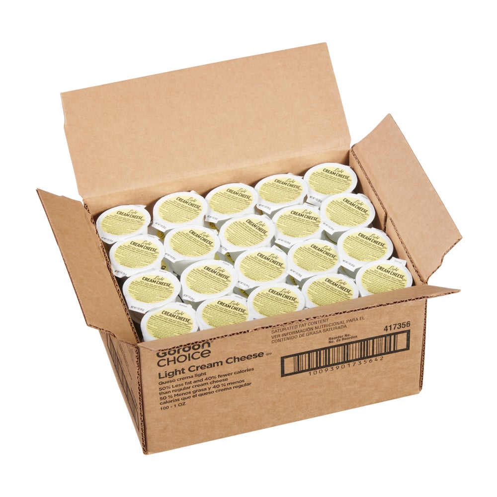Gordon Choice Light Cream Cheese, Single-Serve, Cup, 1 Oz Each, 100/Case