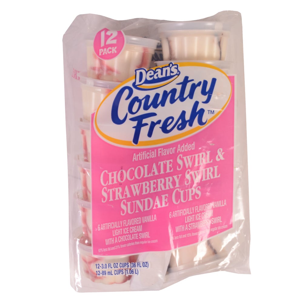 Country Fresh Sundae Ice Cream Cups, Assorted, Frozen, 12 Ct Package, 9/Case
