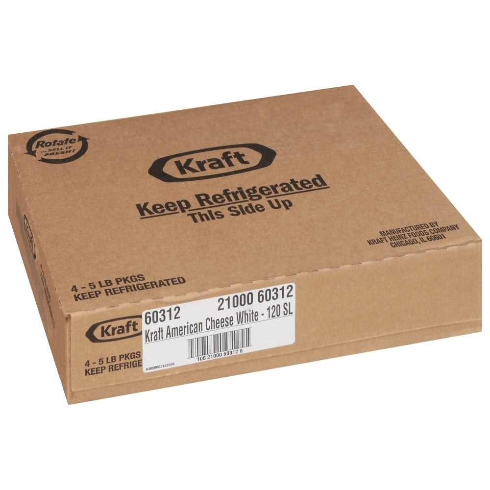 Kraft Pasteurized Process White American Cheese, Sliced, 120 Count, 0.66 Ounce, 5 Lb Package, 1/Case