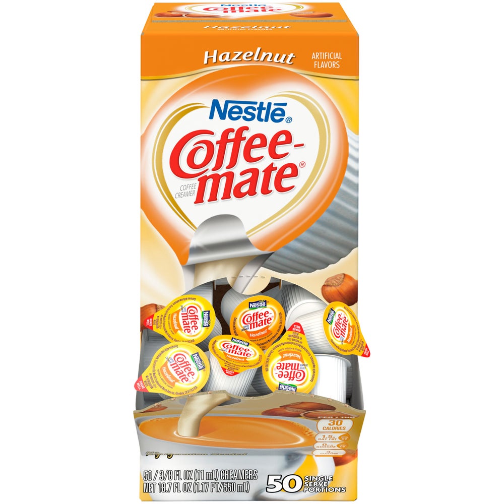 Nestle Hazelnut Non-Dairy Liquid Creamer Cups, Shelf-Stable, Single-Serve, 50 Ct Box, 4/Case
