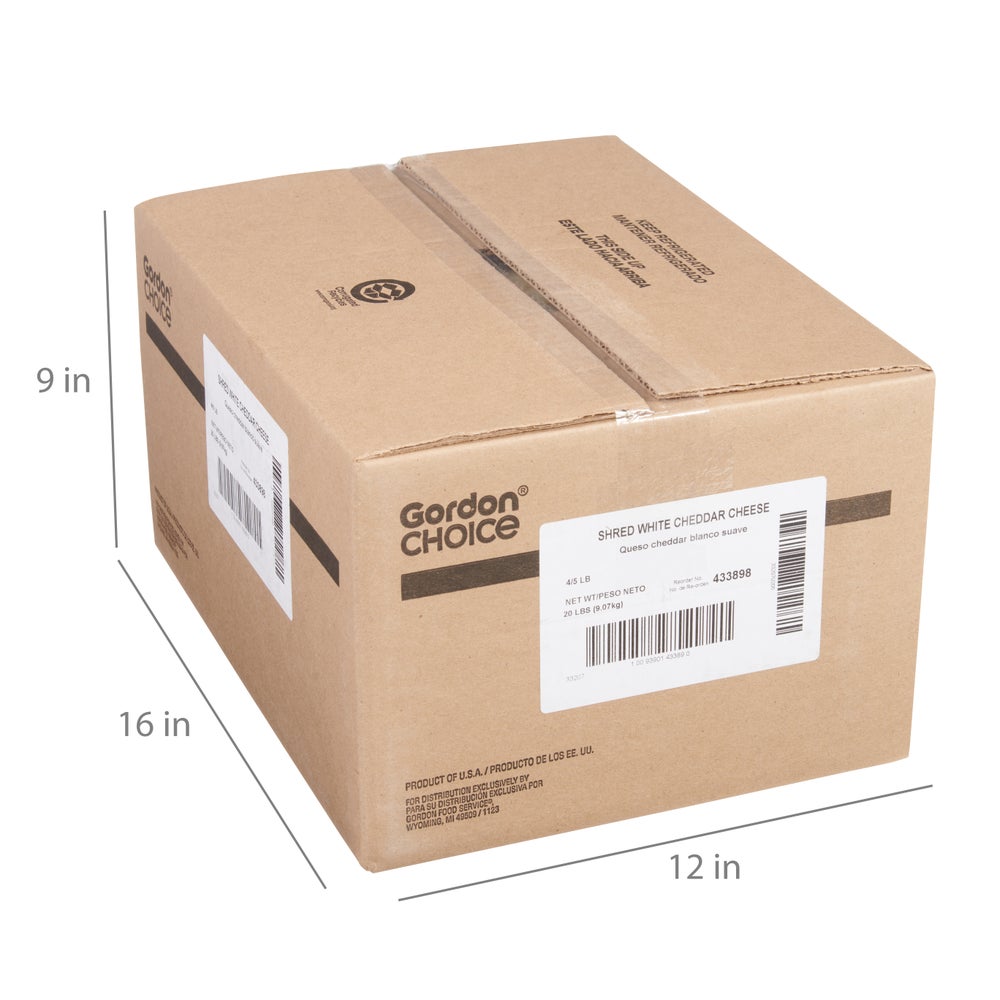 Gordon Choice White Cheddar Cheese, Feather Shredded, 5 Lb Bag, 4/Case