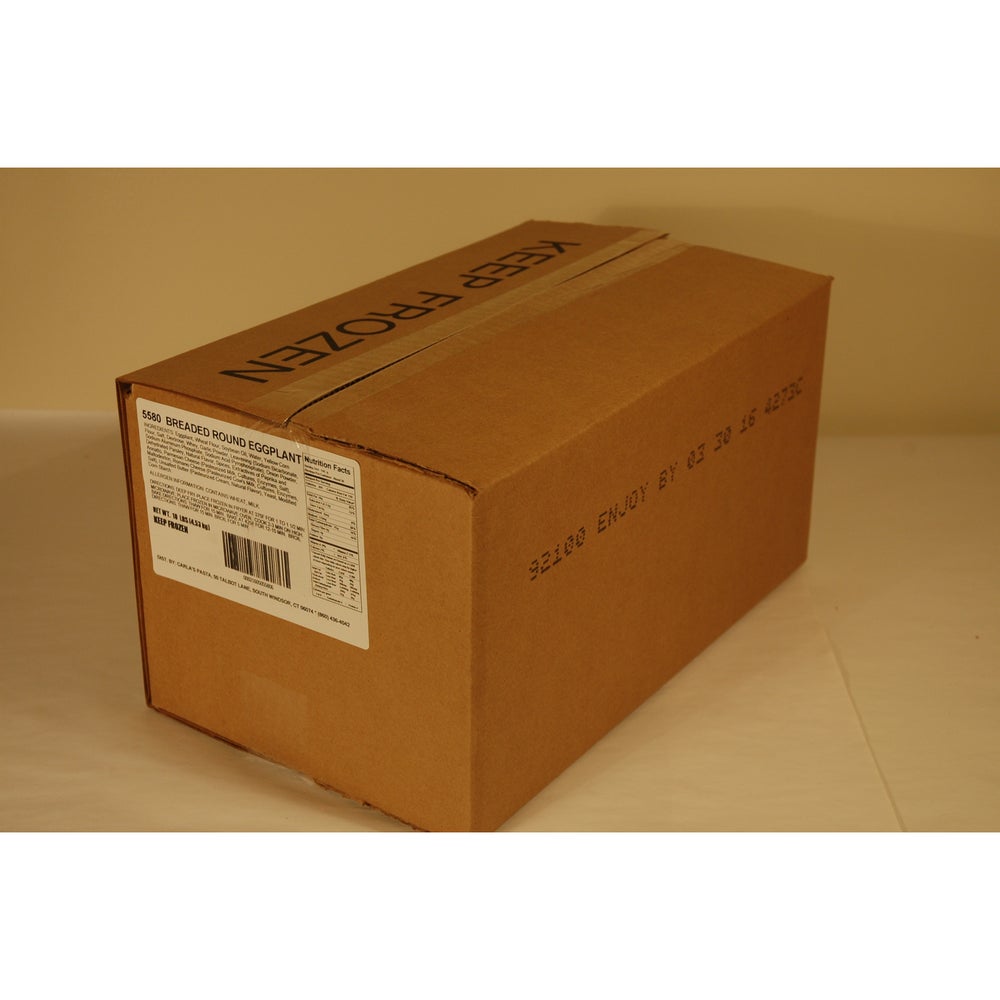 Carla's Pasta Breaded Eggplant Slices, Round Peeled, IQF, 1.8 Ounce, 5 Lb Bag, 2/Case