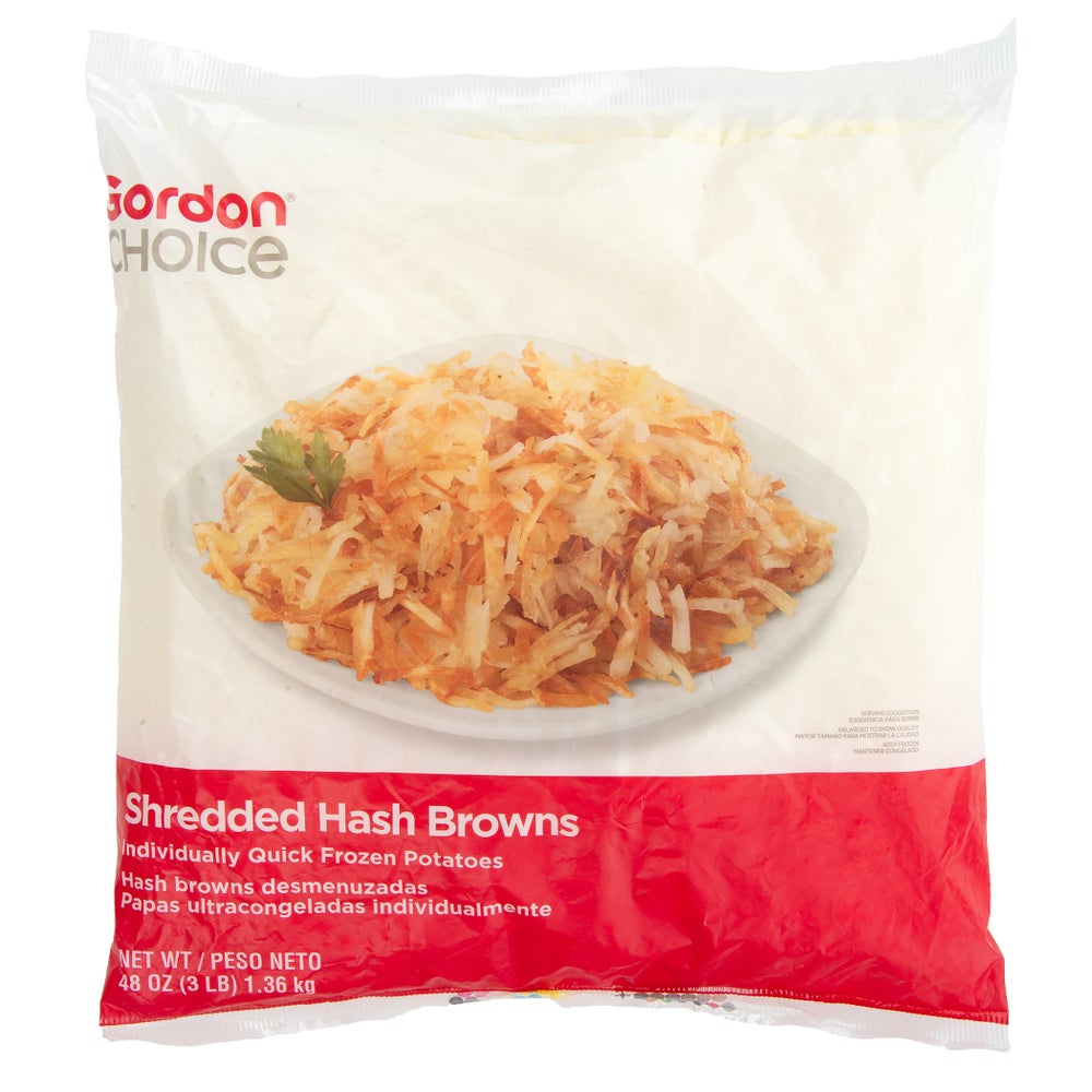 Gordon Choice Shredded Hash Browns, Supreme, Frozen, IQF, 3 Lb Bag, 6/Case