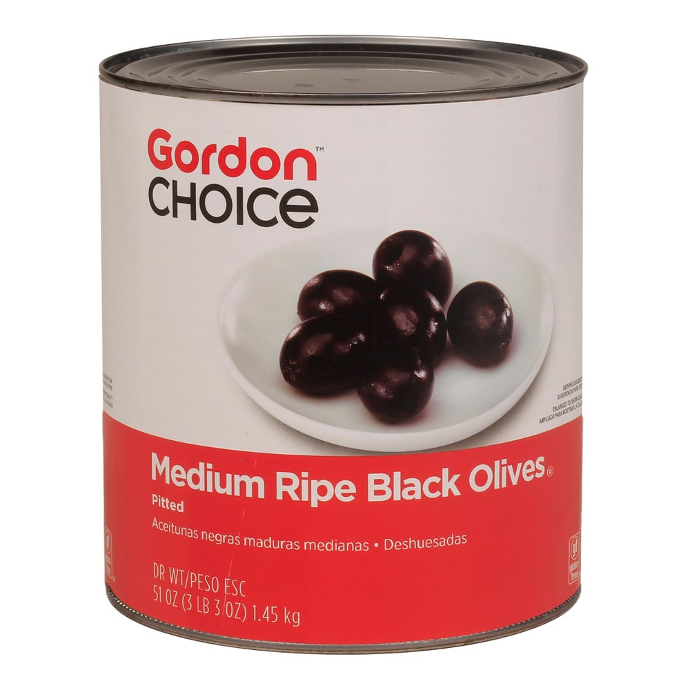 Gordon Choice Medium Spanish Black Ripe Olives, Pitted, #10, 10 Can Sz Can, 6/Case
