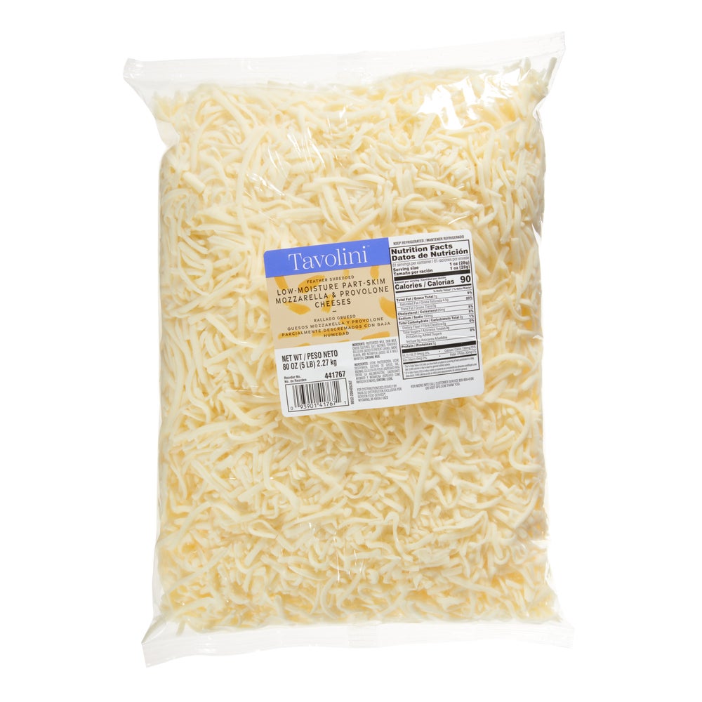 Tavolini Cheese Blend, Mozzarella & Lightly Smoked Provolone, Feather Shredded, 5 Lb Bag, 4/Case