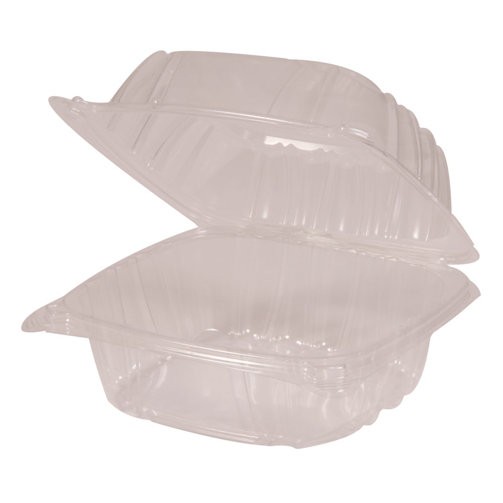 Pactiv 5.75 x 5.88 x 3.13 Inch Plastic Containers, Clear, Hinged, Polystyrene, 125 Ct Package, 4/Case