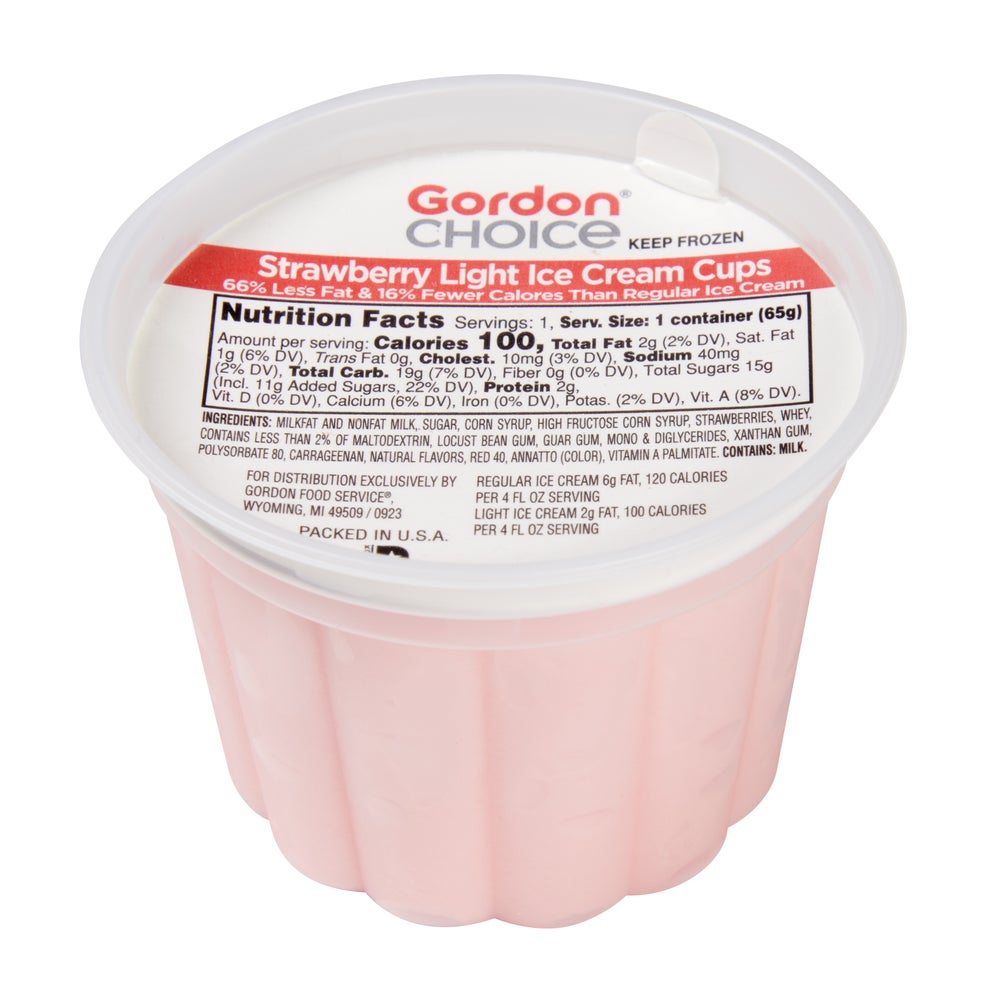 Gordon Choice Strawberry Ice Cream, Cup, Frozen, 4 Fluid Ounce, 24 Ct Package, 3/Case
