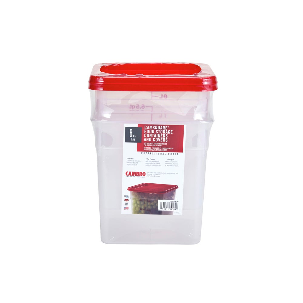 Cambro 8 Quart Square Food Container, Translucent, Polyethylene, with Lid, 2 Ct Package, 1/Case
