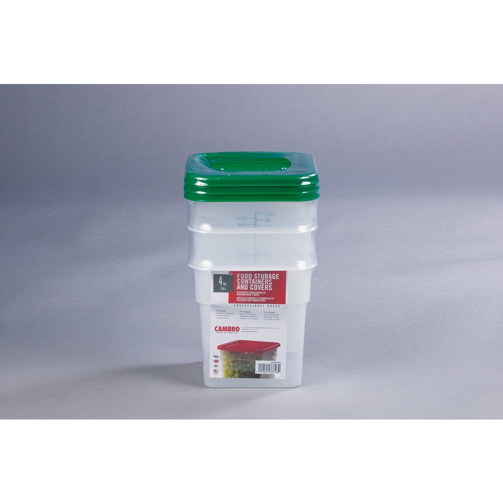 Cambro 4 Quart Square Food Container, Translucent, Polyethylene, with Lid, 3/Package