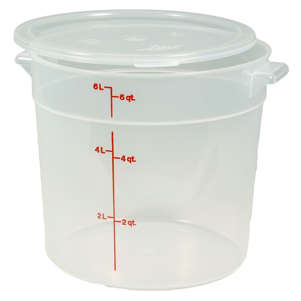 Cambro 6 Quart Round Food Container, Translucent, Polypropylene, with Lid, 2 Ct Package, 1/Case
