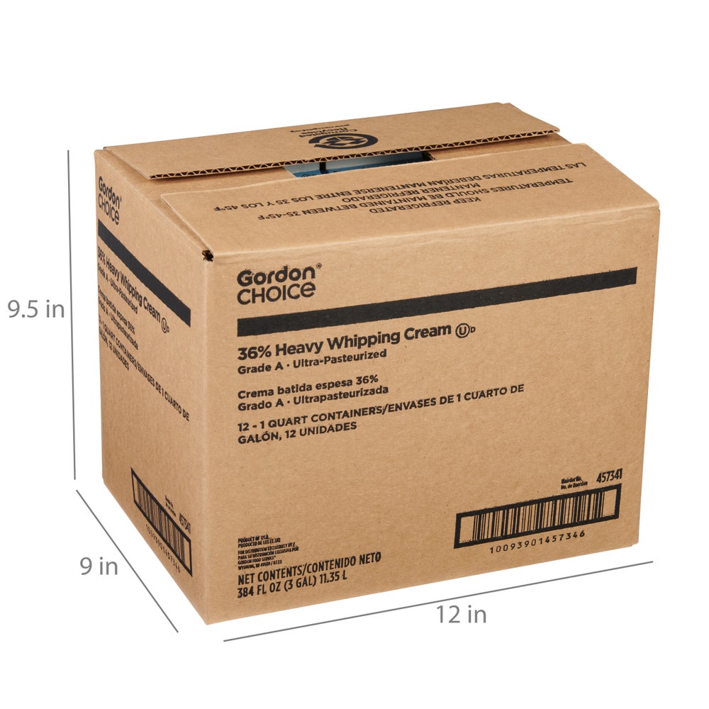 Gordon Choice 36% Heavy Whipping Cream, Grade A, Extended Shelf Life, Refrigerated, 1 Qt, 12/Case