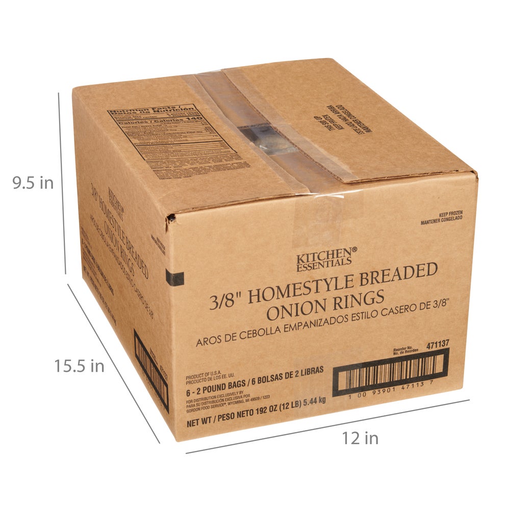 Kitchen Essentials Homestyle Onion Rings, 3/8 Inch, Frozen, 2 Lb Package, 6/Case