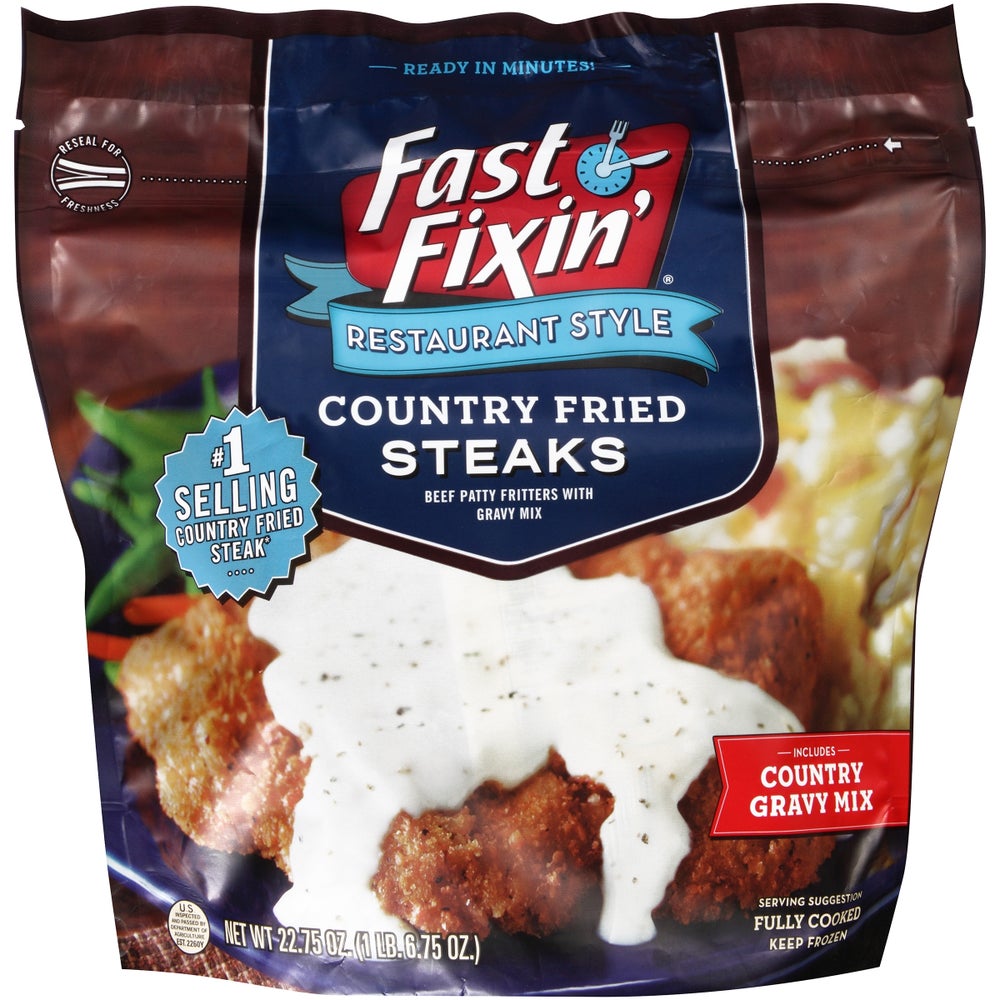 Fast Fixin' Beef Steaks Country Fried, with Gravy Mix, 22.75 Oz Bag, 6/Case