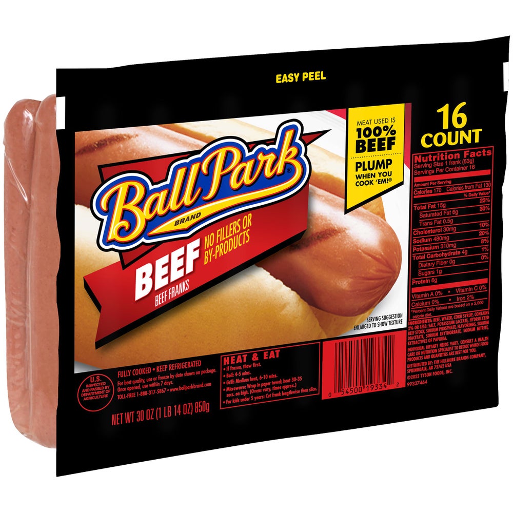 Ball Park Beef Franks, 16 Ct Package, 6/Case