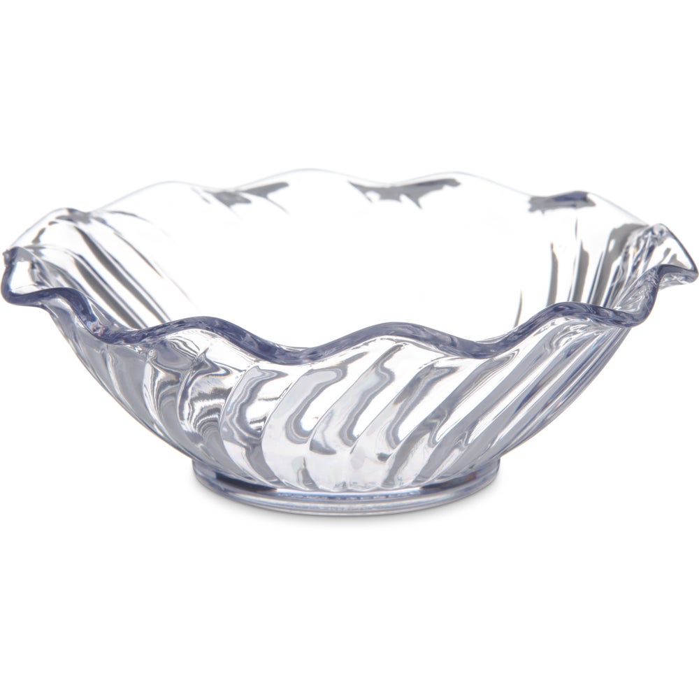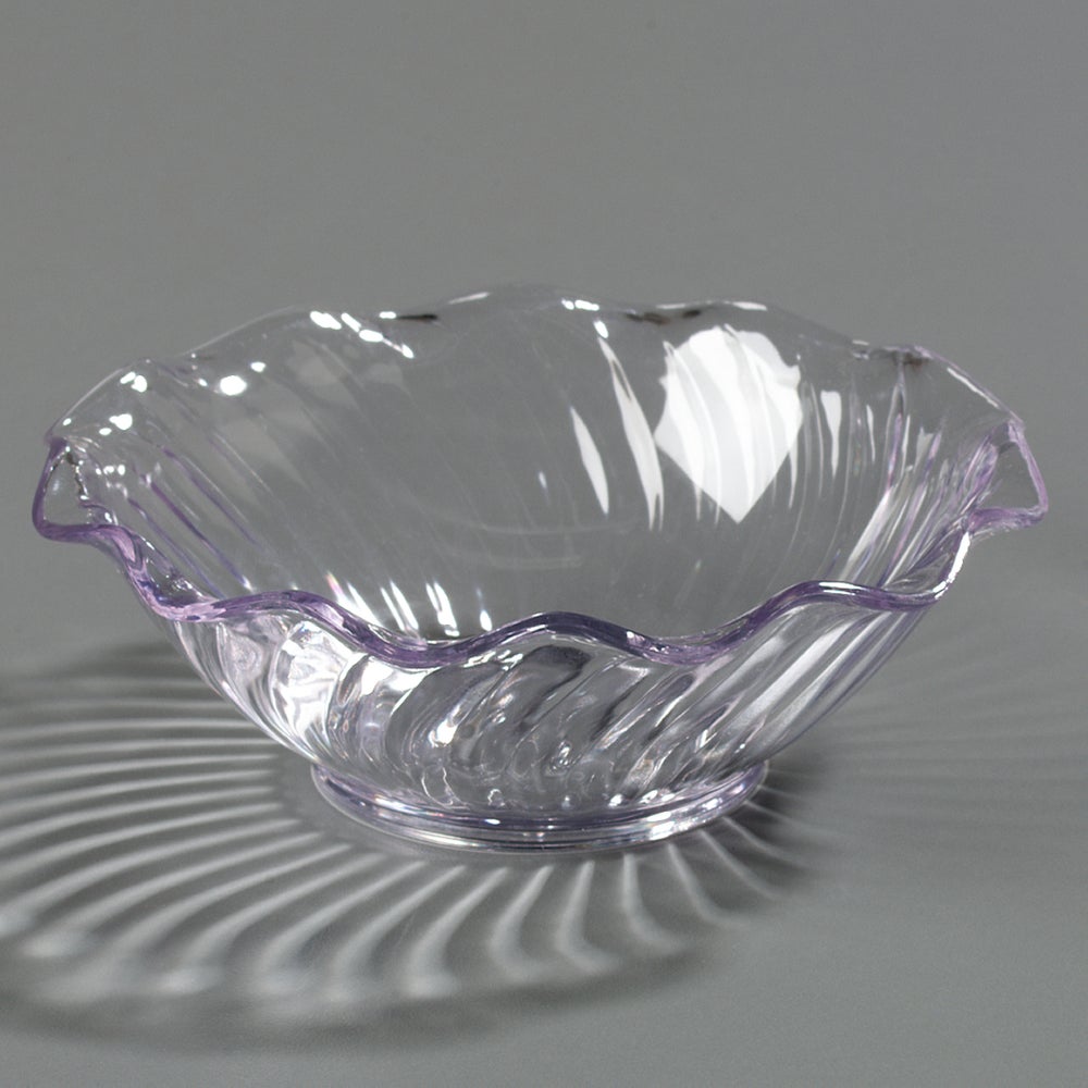 Versatile enough for hot or cold applications, these elegant plastic dishes are designed to stack easily with other glass or plastic dessert dishes. Ideal for serving ice creams, puddings, and salads.