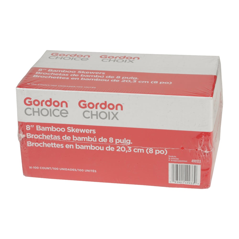 Gordon Choice 8 Inch Bamboo Skewers, 100 Ct Box, 16/Case
