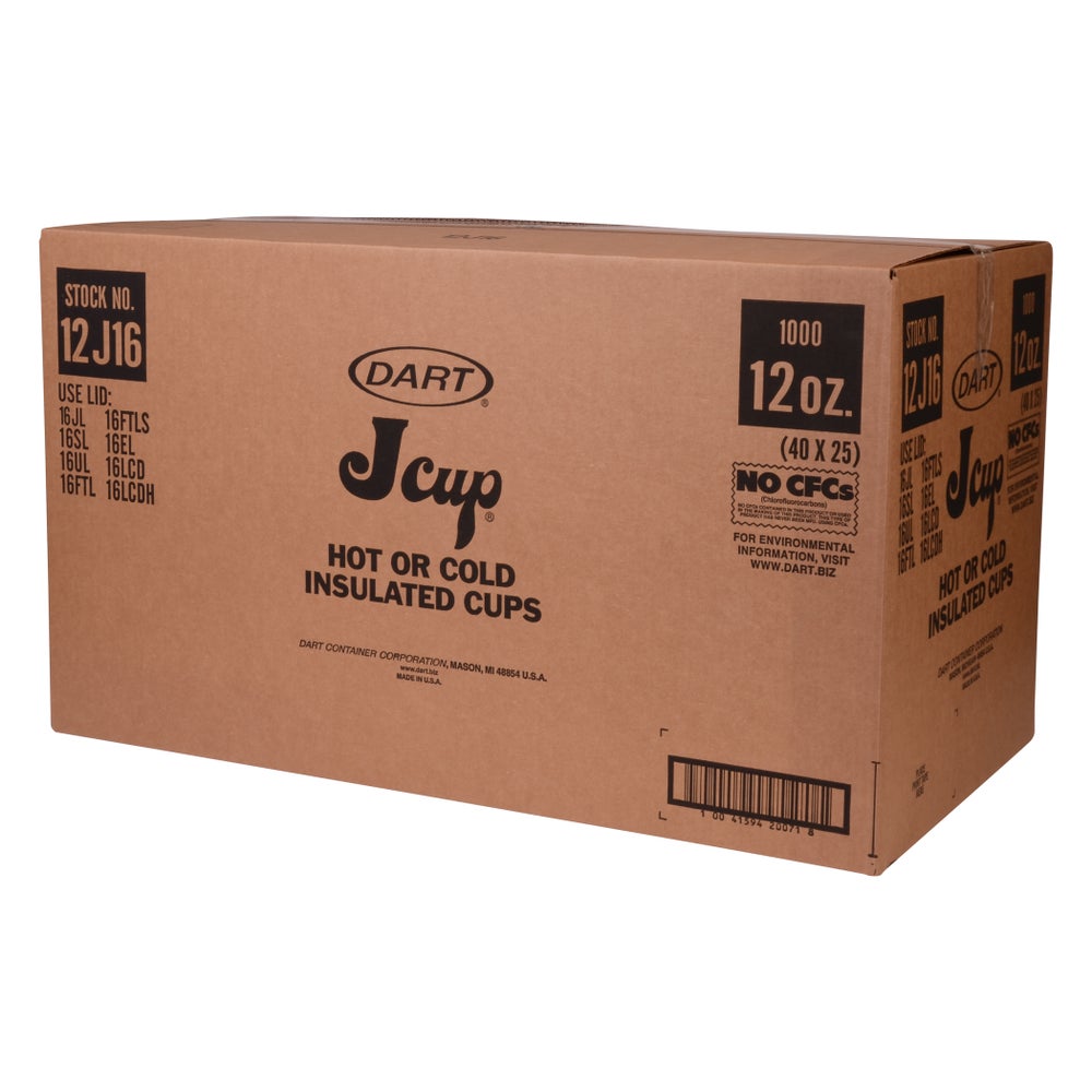 Dart 12 Ounce Foam Hot & Cold Cups, White, Squat, Beaded, Polystyrene, 25 Ct Package, 40/Case