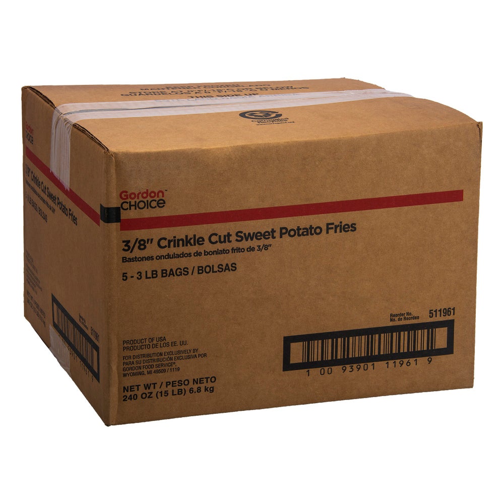 Gordon Choice 3/8 Inch Crinkle Cut Sweet Potato Fries, Battered, Bakeable, Frozen, 3 Lb Bag, 5/Case