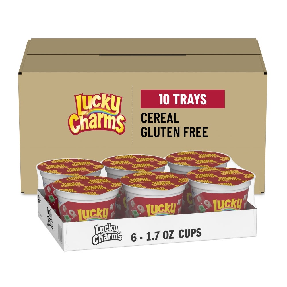Lucky Charms Frosted Toasted Oat Cereal, with Marshmallows, Cup, 1.7 Ounce, 6 Ct Tray, 10/Case