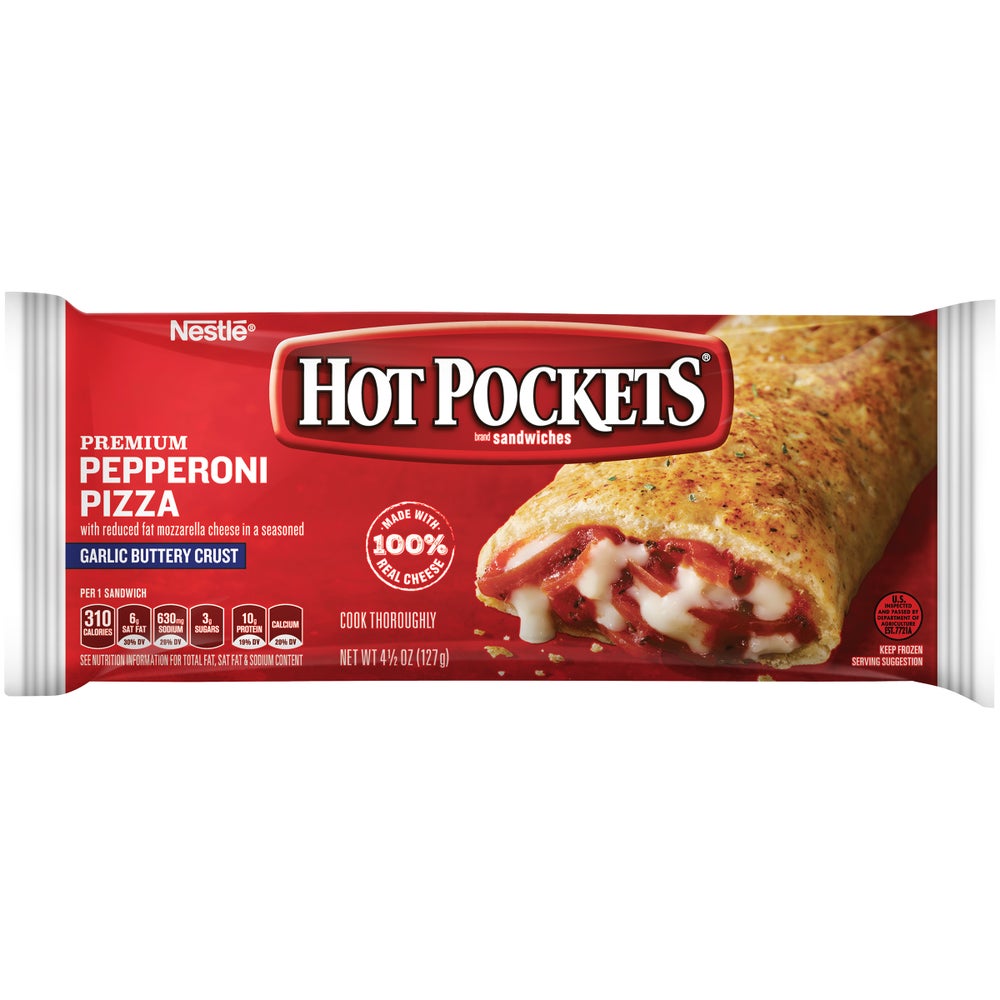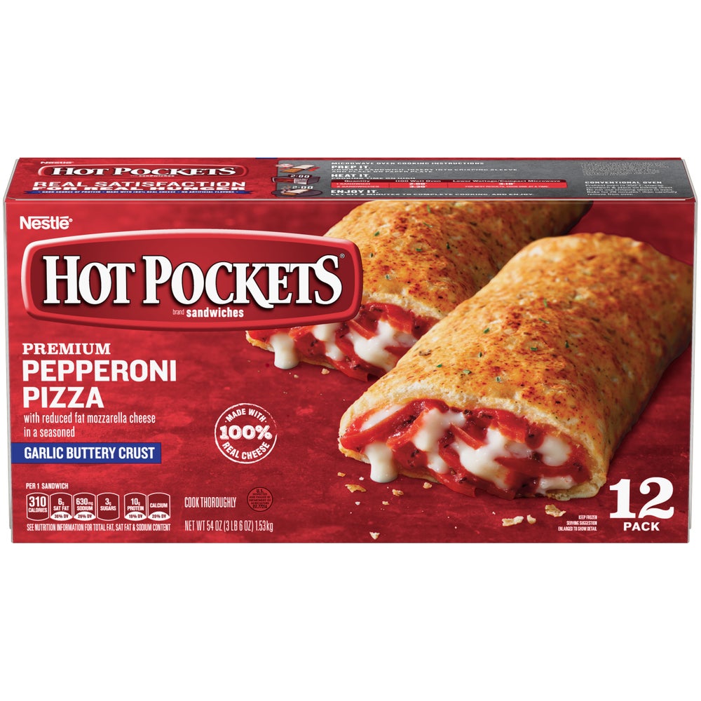 Hot Pockets Pepperoni Pizza Pockets, Frozen Individually Wrapped, 12 Ct Box, 6/Case