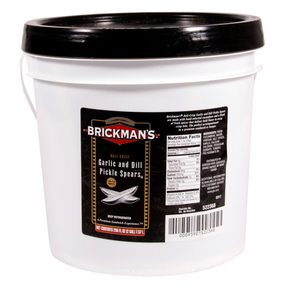 Brickman's Kosher Garlic Dill Pickle Spears, 160 Count, Refrigerated, Plastic, 2 Gal, 1/Pail