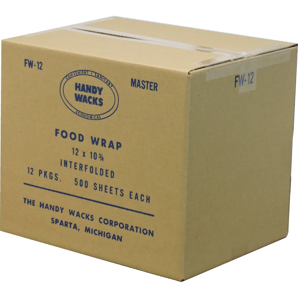 Handy Wacks 12 x 10.75 Inch Dry-Waxed Paper Deli Wraps, White, Medium-Grade, Interfolded, 500 Ct Package, 12/Case