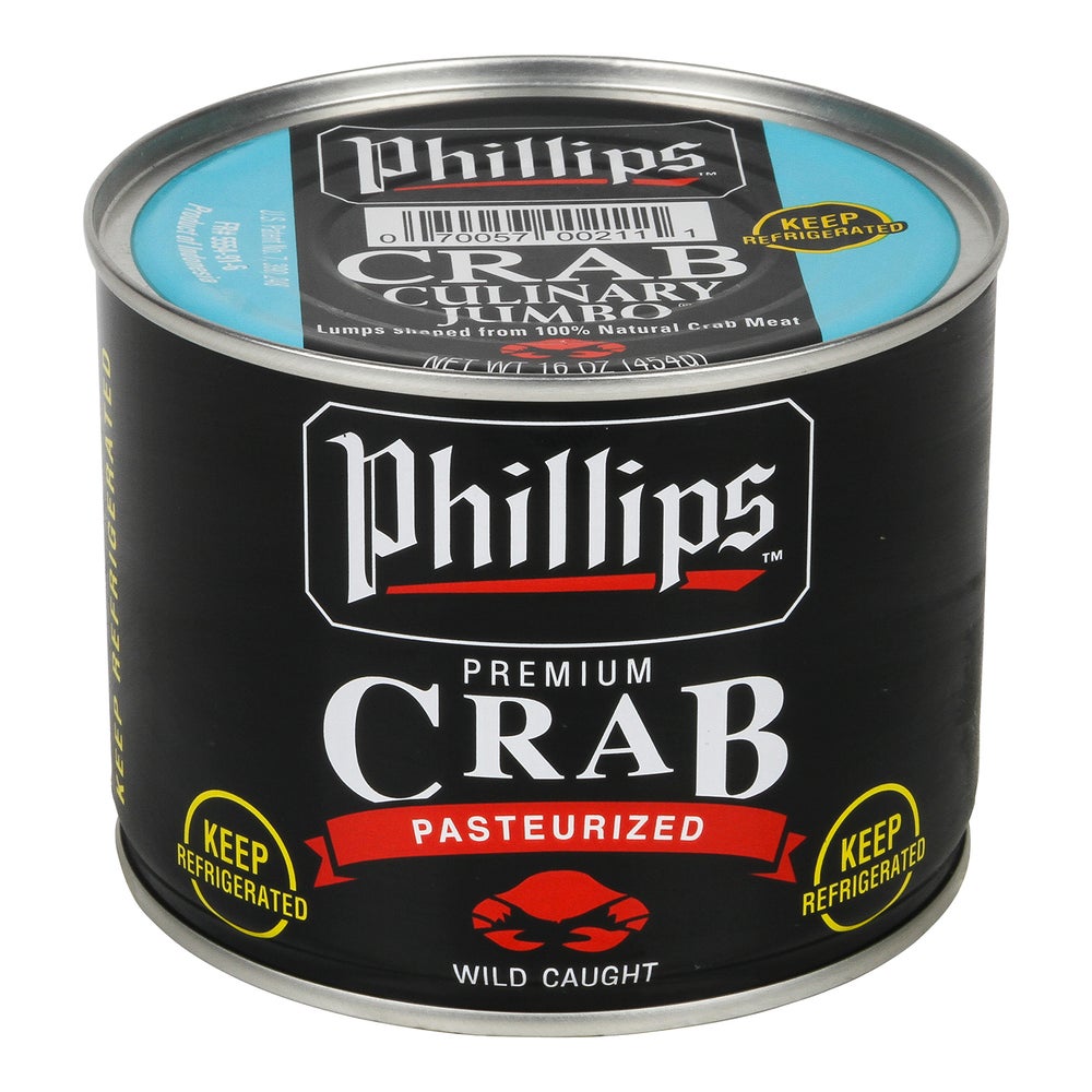 Phillips Culinary Jumbo Crab Meat, Wild-Caught, Pasteurized, Cooked, Refrigerated, 1 Lb Can, 6/Case