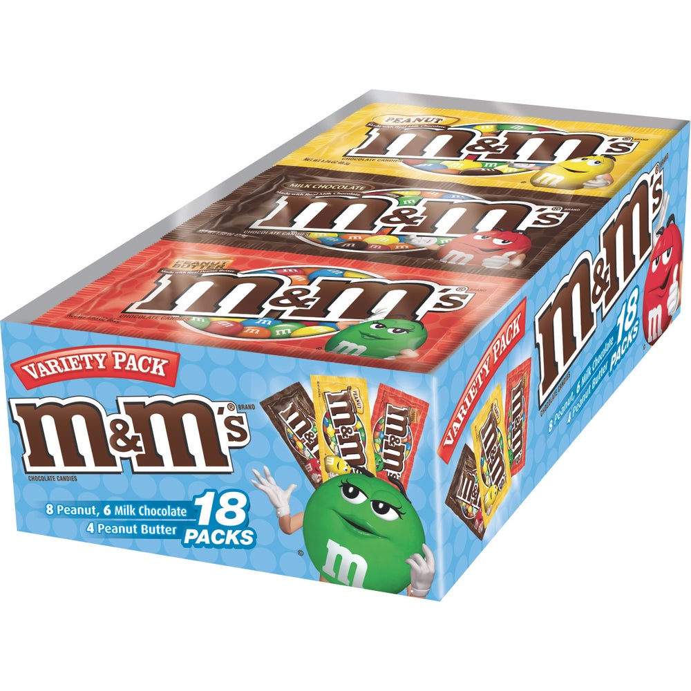 M&M's Candy, Variety Pack, 18 Ct Box, 10/Case