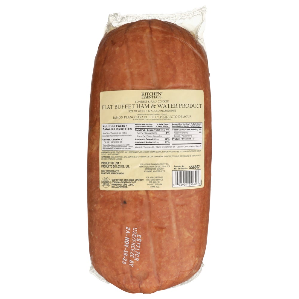 Kitchen Essentials Smoked Buffet Flat Ham & Water Products, 12 Pound Average, Fresh, 12 Lb Avg Piece, 2/Case