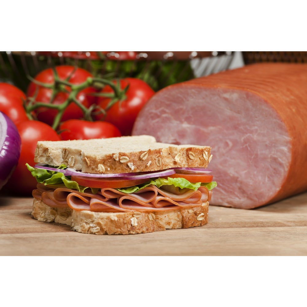 - This naturally hickory-smoked, multi-muscle ham is a reliable choice in creating thin slices, ideal for use in a variety of sandwiches. A ham and water formula maintains a juicy flavor profile after slicing.