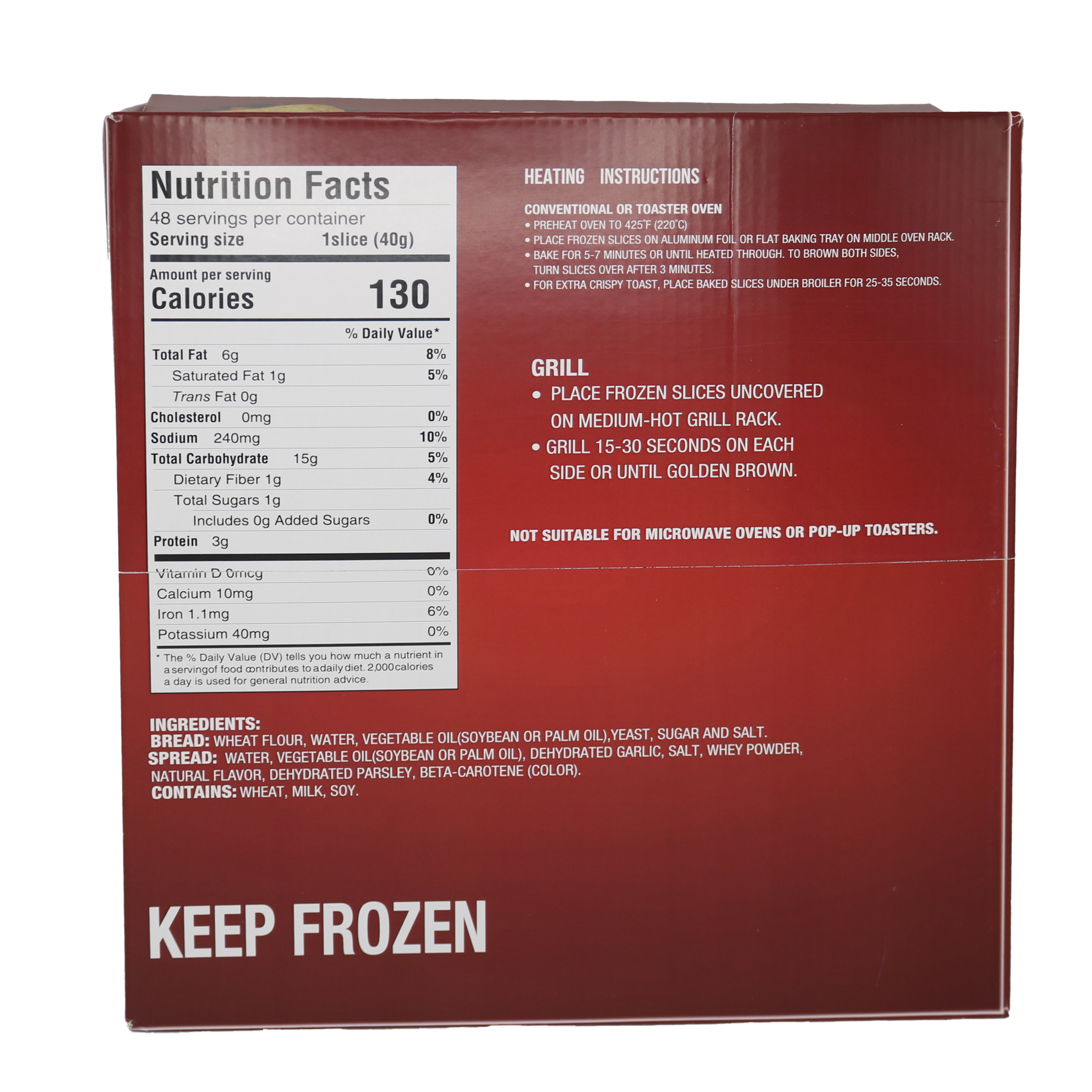 Bread, Garlic, Sliced, Frozen, 1.2 Ounce, 48 Ct Package