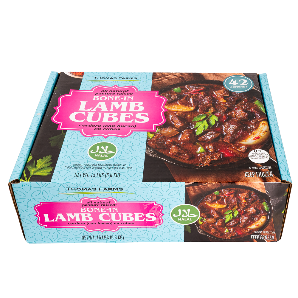 Thomas Farms Lamb Cubes, Bone-In, Frozen, 15 Lb Bag, 1/Case