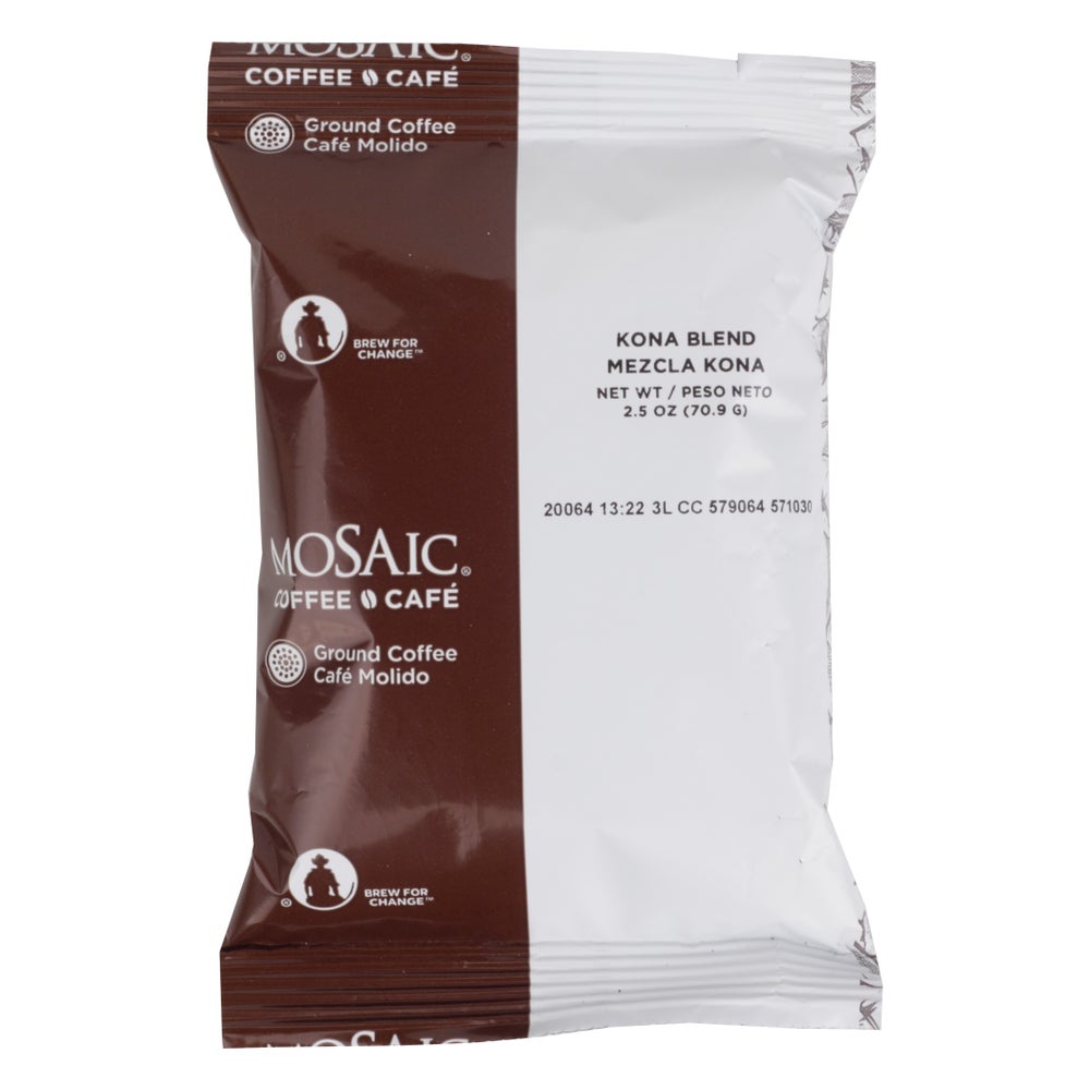 Mosaic Kona Blend Ground Coffee, 100% Arabica, 2.5 Oz Package, 48/Case