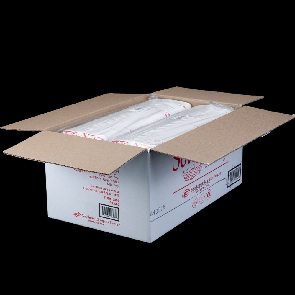 Southern Champion Tray 5 Pound Paper Food Trays, Red Checkered, 125 Ct Package, 4/Case