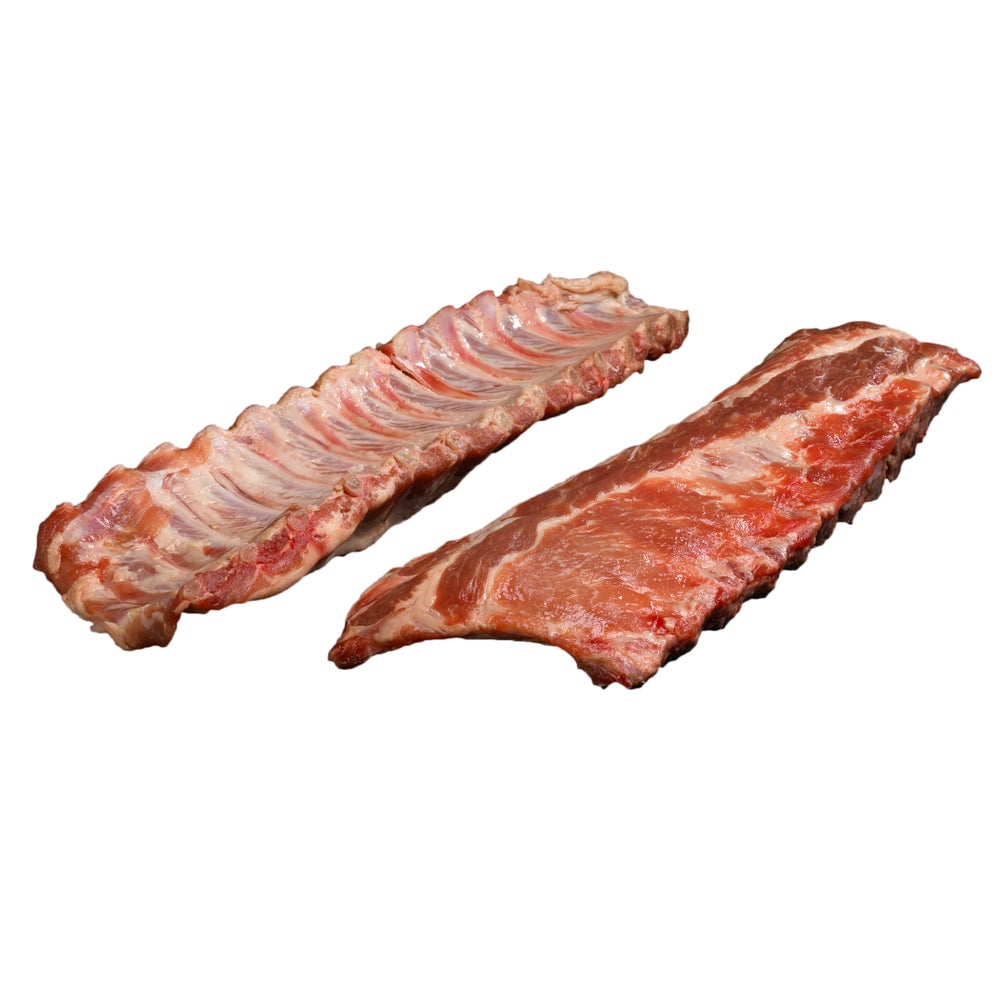 - Back ribs come from the area of the loin closest to the shoulder and are tender and meaty. They are sometimes known as pork loin back ribs or loin ribs. These back ribs are cut from tender, flavorful and butcher-quality hogs.