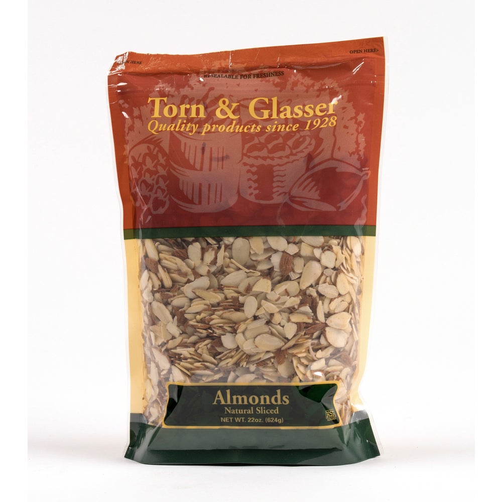 Torn & Glasser Sliced Almonds, Natural, 1.38 Lb Bag, 6/Case