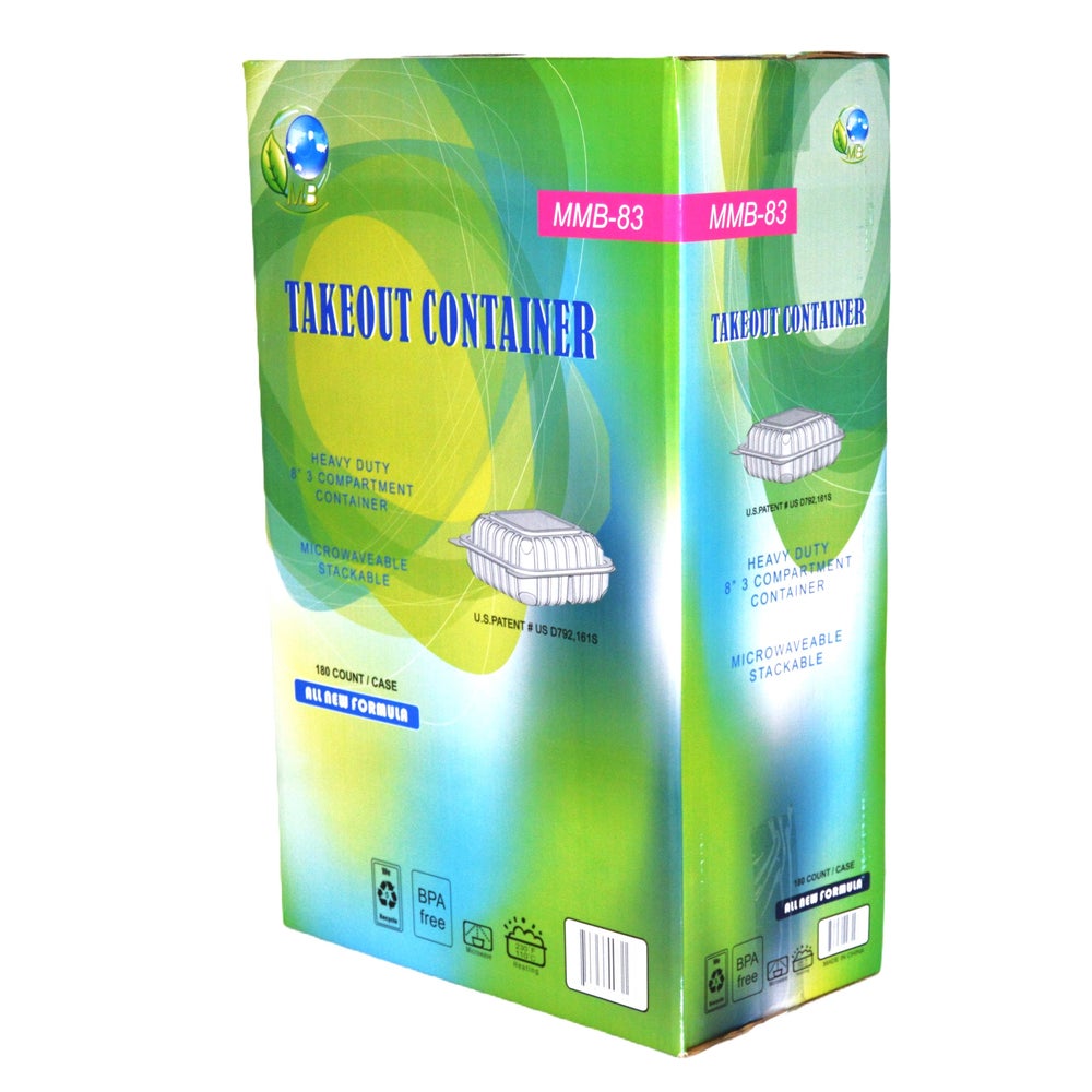 Rerobox 8 Inch 3-Compartment Containers, Hinged, Mineral Filled Polypropylene, 180/Case