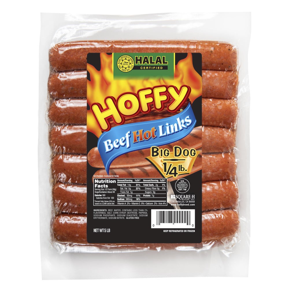 Hoffy Hot Beef Sausage, 6.75 Inch, Links, 4 Count per Pound, Fresh, 1 Ounce, 5 Lb Package, 4/Case