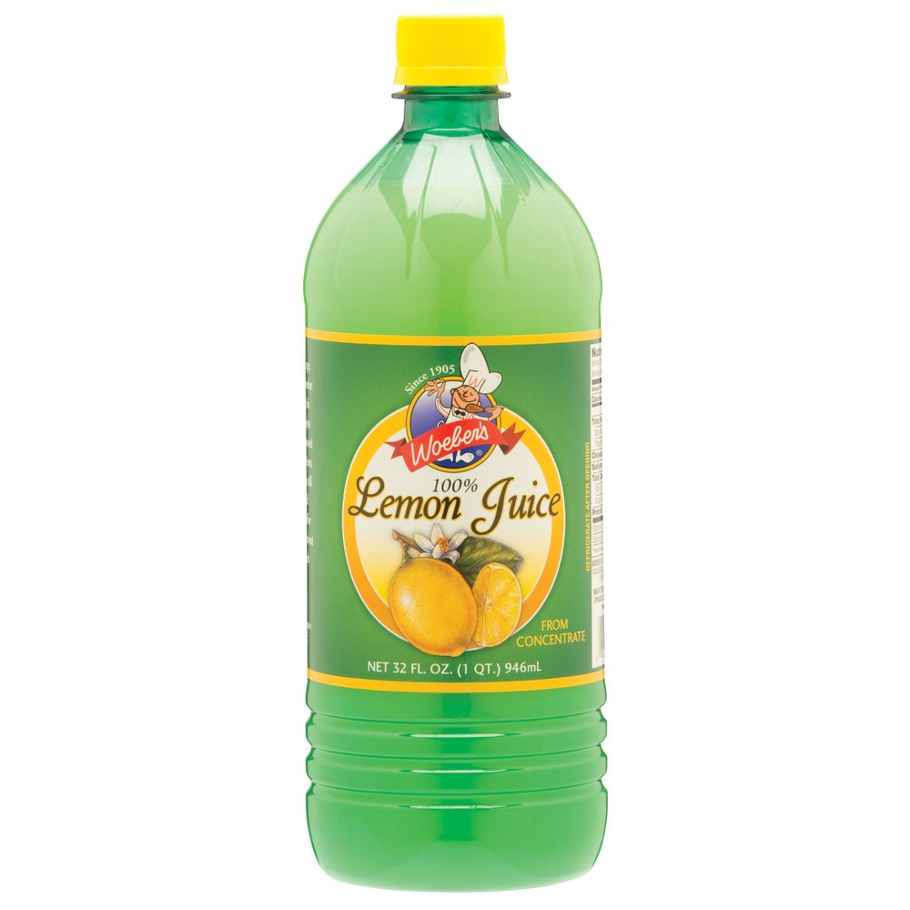 Woeber's Lemon Juice, Shelf-Stable, 1 Fluid Ounce, 32 Fl Oz Bottle, 12/Case