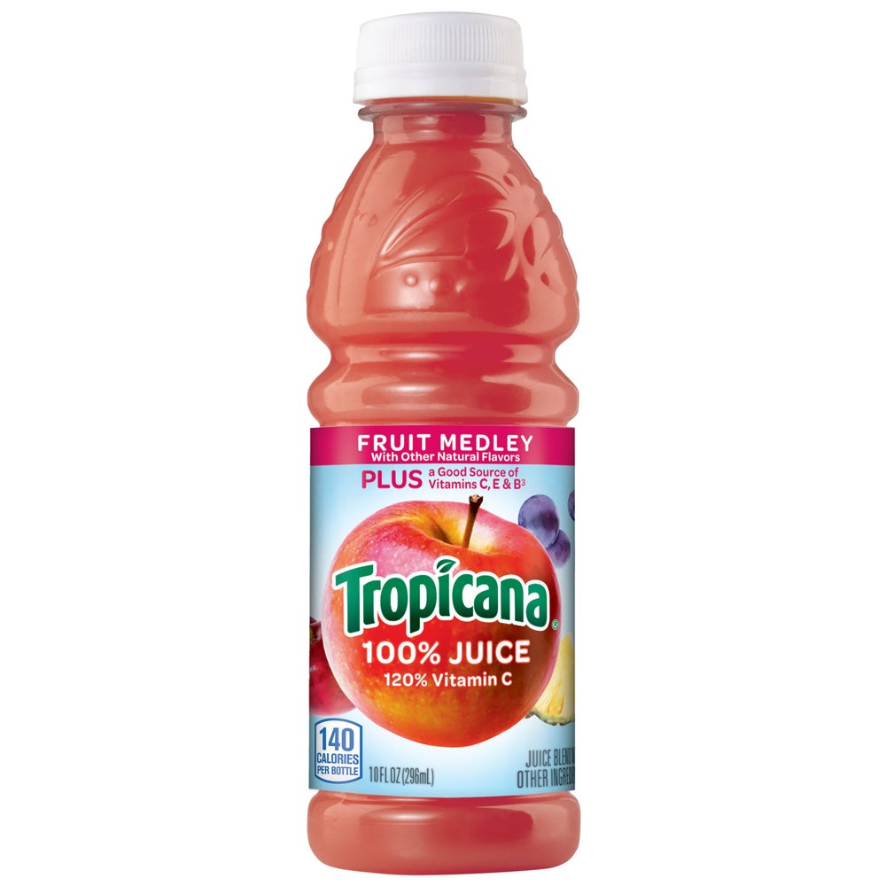 Tropicana 100% Fruit Medley Juice, Shelf-Stable, Single-Serve, 10 Fl Oz Bottle, 15/Case