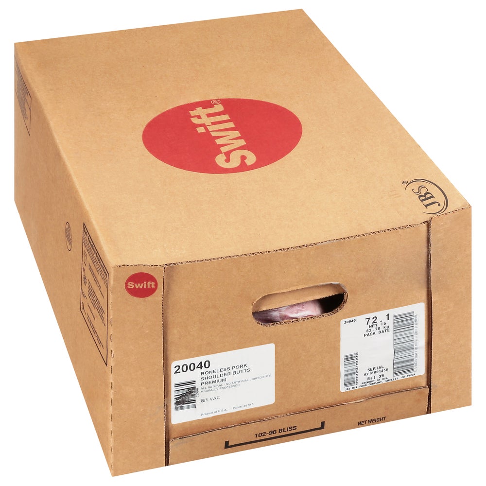 Swift Bone-In All Natural Butt Pork, 9.4 Lb Avg Package, 8/Case
